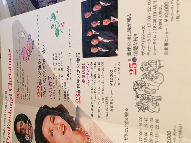 懐かしいパンフレットが見つかったのでちょっと思い出にひたりつつ眺めてみました。ザ・プリティーズ時代ですね。19か20歳ころかな。阿川泰子さんが全盛期でした。左からエリちゃん、栄子ちゃん、塩野入さん,ちみちゃん、そして私。
